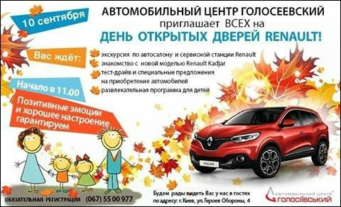 Приглашаем Вас посетить Автомобильный центр Голосеевский, чтобы познакомиться с новой модели Renault Kadjar, а также пройти тест драйв и получить оригинальный подарок. .