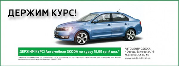 Только сейчас в официальном дилерском центре АВТОЦЕНТР ОДЕССА на Балковской, 16а на автомобили Skoda действуют специальные цены на полный модельный ряд, по специальному курсу!.