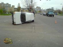 У Лады повреждена передняя часть с правой стороны: помято крыло, капот, бампер, правая фара вообще отсутствует. У «перевертыша» помята задняя часть с правой стороны, а также поврежден весь левый бок.