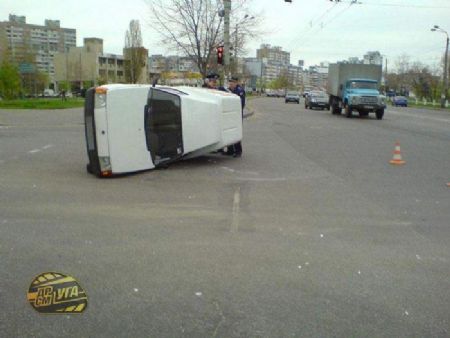В Днепровском р-не, на пересечении просп. Владимира Маяковского и ул. Каштановой ВАЗ-2109 протаранил Таврию, после чего последняя перевернулась на бок, сообщает .