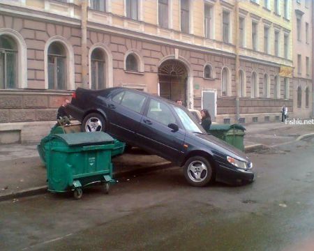 Хорошо, что сзади была всего лишь помойка, а люди просто посмеялись и разошлись.