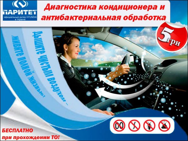 Автоцентр «ПАРИТЕТ» заботится о Вашем здоровье и комфорте! Только до 31.05.2014 на СТО «ПАРИТЕТ» действует уникальное предложение - Диагностика системы кондиционирования и профилактическая антибактериальная обработка за 5 грн! А при прохождении ТО – бесплатно*!.