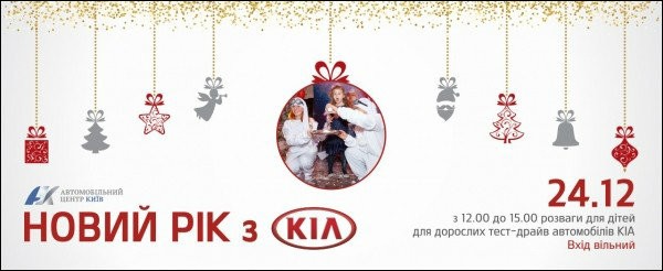 Дорогі друзі! Дилерський центр KIA «Автомобільний центр Київ» на пр.С.Бандери, 22 запрошує Вас 24 грудня о 12-00 на дитяче свято «Новий рік з KIA».