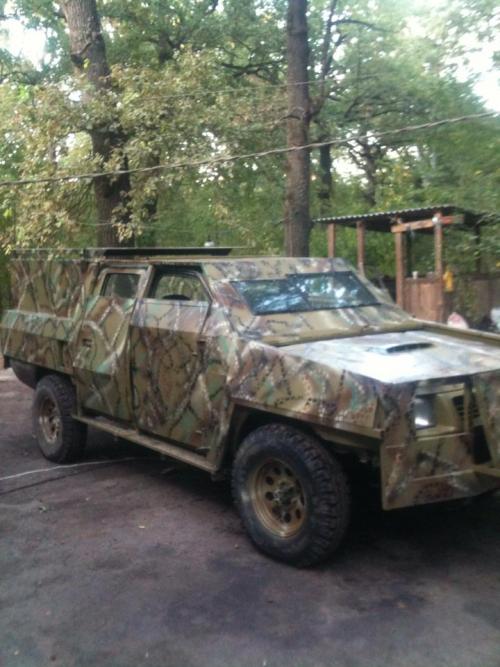 А вот на базе Nissan Pick-up решено сделать классический бронеавтомобиль с крупнокалиберным пулеметом. Такой универсальный автомобиль бойцы ценят даже выше, чем БТР. Для камуфляжной покраски авто пригласили одного из ведущих специалистов по маскировке, который подобрал пигменты исходя из места будущей службы авто и времени года. Обнаружить теперь броневик стала намного сложнее.
