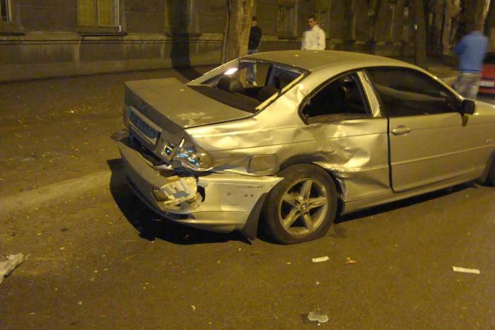 Вчера, в 23:45, в г. Днепропетровск водитель автомобиля BMW, не выбрав безопасную скорость движения, не справился с управлением и совершил наезд на припаркованный на краю обочины автомобиль Dacia Logan.