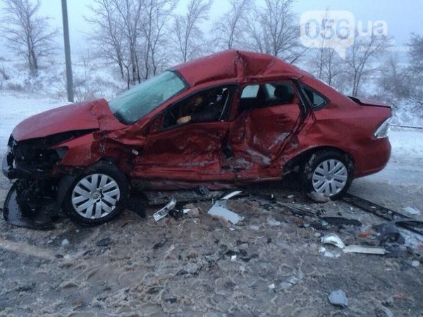 В Днепропетровске по дороге в аэропорт девушка за рулем Volkswagen допустила столкновение с микроавтобусом, сообщает .