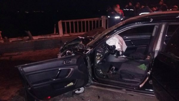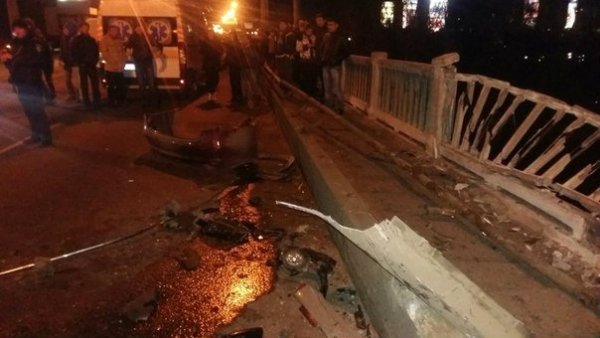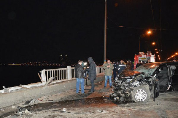 Сотрудники ГАИ сообщили, что по предварительной информации, произошло лобовое столкновение. Автомобиль Subaru остался на мосту. Второе авто - Mitsubishi сорвалось с моста в Днепр. В салоне авто находились супруги.
