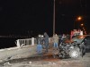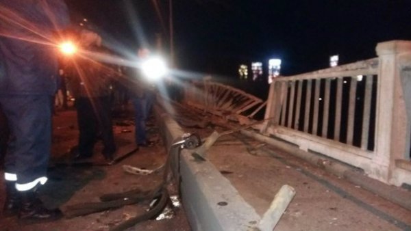 В ограждении моста огромная пробоина. На месте происшествия работает Госавтоинспекция и спасатели.
