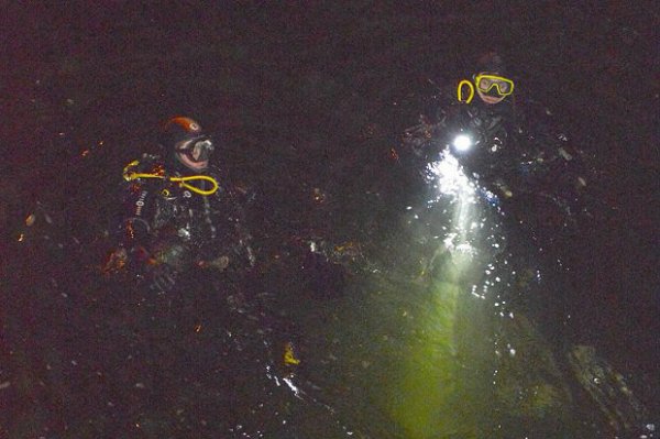 В условиях почти нулевой видимости водолазы подняли тела двух погибших из Mitsubishi с трехметровой глубины. Позже, помощью крана, подняли сам автомобиль. По информации полиции, погибшие - 36-летний водитель автомобиля и его 33-летняя жена.