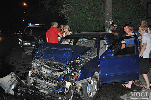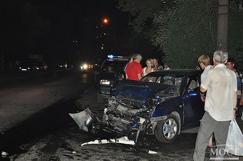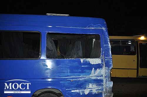 ДТП произошло во вторник, 26 июля, вечером по улице Богдана Хмельницкого в Днепропетровске. Лоб в лоб столкнулись легковушка и маршрутное такси. К счастью, в микроавтобусе не было пассажиров — он ехал в гараж, сообщает .