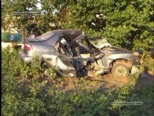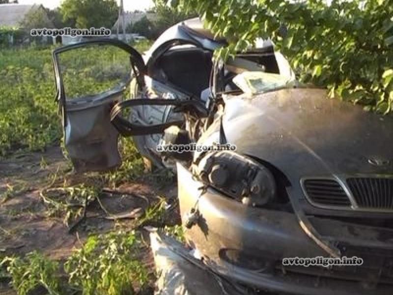 Удар был достаточно мощным - Daewoo вылетел на обочину, где врезался в дерево, а Merсedes Sprinter опрокинулся.