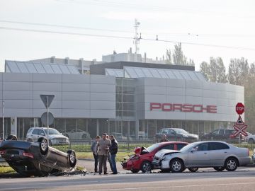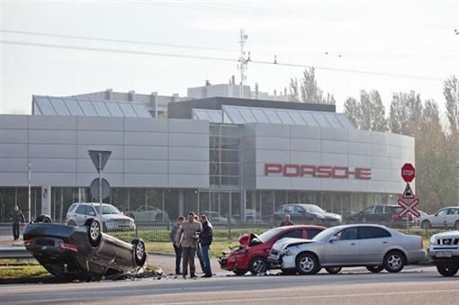 На Запорожском шоссе, в районе улицы Паникахи 11 октября произошло ДТП с участием трех автомобилей. Две легковушки столкнулись лоб в лоб, аToyota Camry оказалась на крыше.