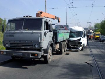 3 мая в 08:00, в г. Днепропетровске, на мосту № 1, водитель микроавтобуса Mercedes-Benz отвлекся от управления и совершил столкновение со стоячим грузовым автомобилем КАМАЗ.