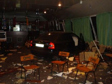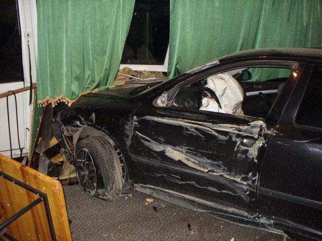 Водитель автомобиля «Skoda» не справился с управлением при повороте и въехал в кафе. Автомобиль влетел прямо в зал.