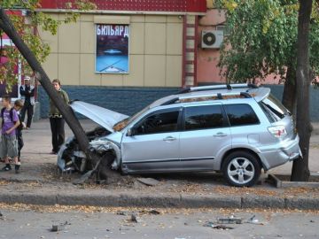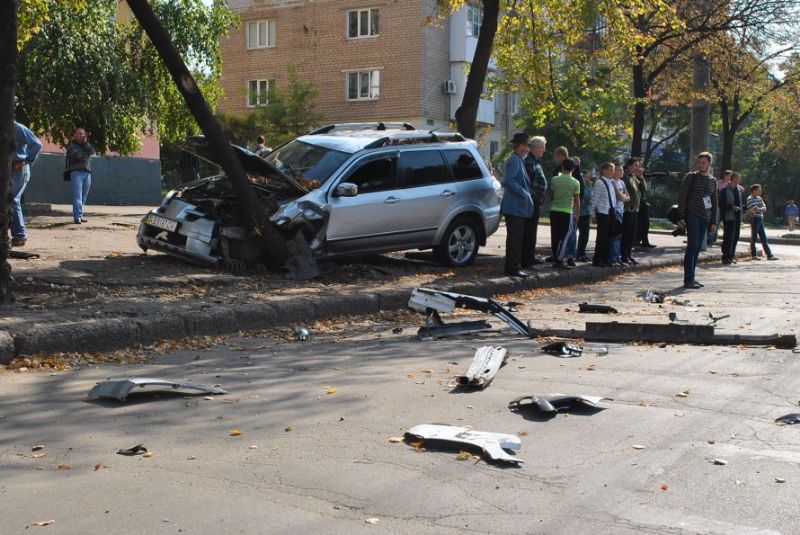 По неизвестным пока причинам в момент аварии Geely оказалась не на своей полосе. Mitsubishi Outlander вылетел за пределы проезжей части и врезался в дерево, при этом сильно повредив переднюю часть автомобиля и потеряв одно колесо.