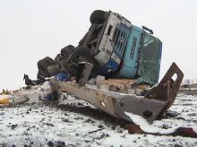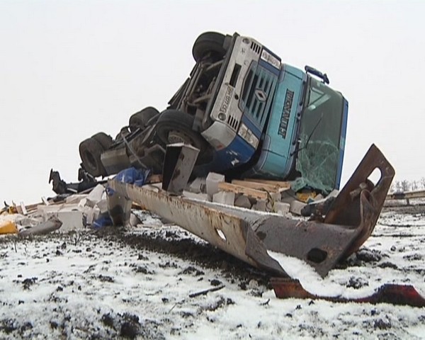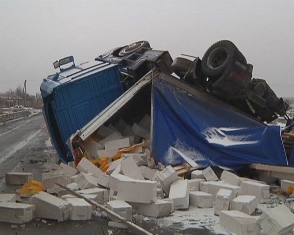 Грузовик перевозил строительные материалы. По предварительным данным, водитель автомобиля не справился с управлением на скользком участке трассы. Машина вылетела на встречную и только чудом не задела другой транспорт. А потом фура съехала в кювет и опрокинулась. Водитель грузовика попал в больницу с серьезными травмами, сообщает .