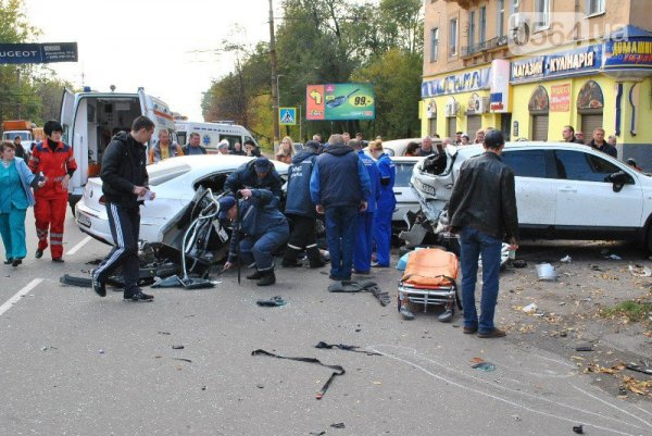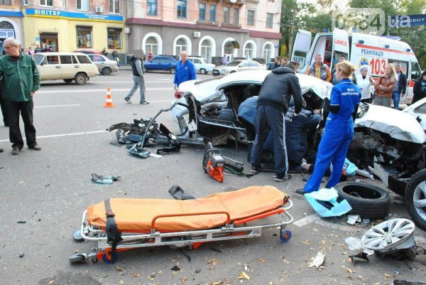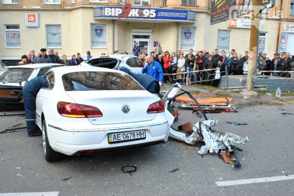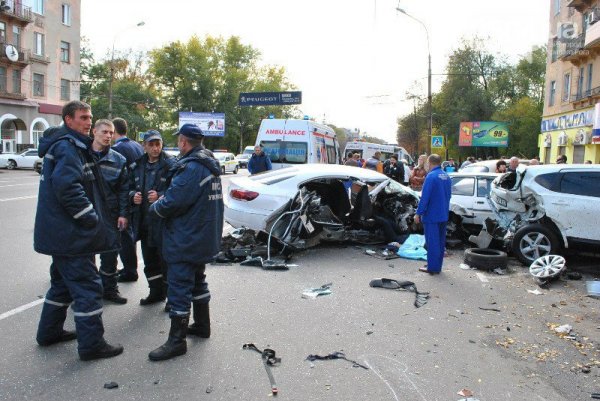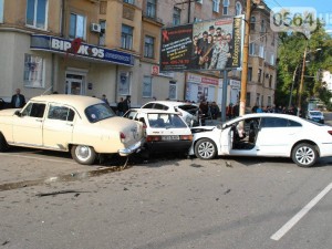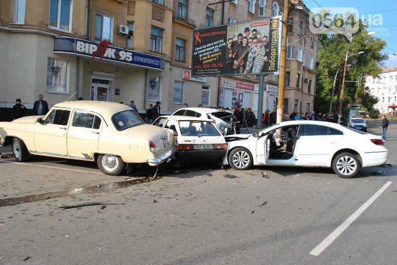 От удара его отбросило на стоявшие на стоянке Nissan Qashqai и "Таврию", а уже "Таврия" подмяла под себя ГАЗ-21.