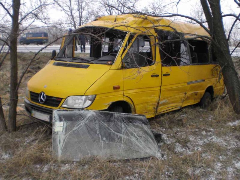 3 декабря, в 8:20, в Днепропетровской области на 435 км автодороги ''Борисполь - Запорожье'' водитель автомобиля ВАЗ 210934 при выполнении обгона, на скользком участке дороги (некачественно обработана противогололедными материалами), не выбрал безопасную скорость, не справился с управлением и выехал на полосу встречного движения, где совершил столкновение с микроавтобусом Mercedes-Benz.