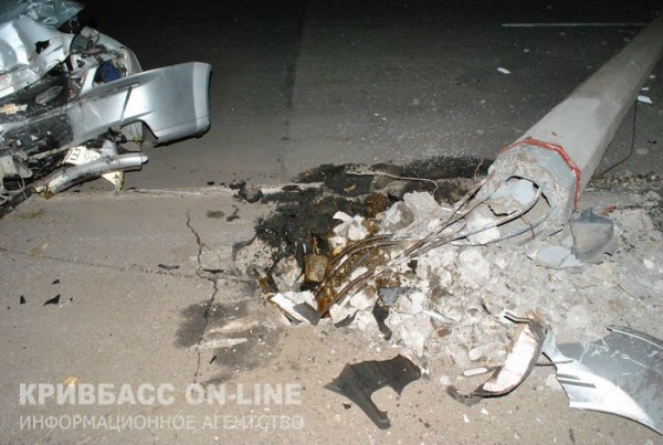 В районе ответвления дороги на улице Димитрова водитель не справился с управлением и врезался в электроопору. Удар был такой силы, что конструкция сломалась.