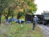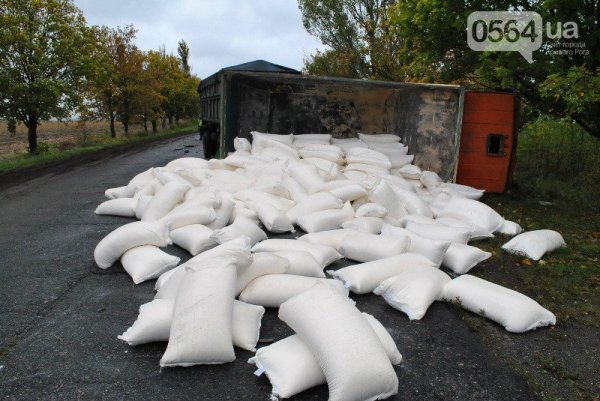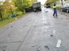 Грузовик с прицепом, груженный мукой двигался во встречном направлении. От сильного удара КамАЗ перевернулся.