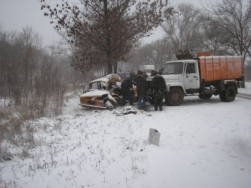 20 января в 14:30 в г. Кривой Рог Днепропетровской области водитель автомобиля ВАЗ 21011 на закруглении дороги влево не справился с управлением и выехал на полосу встречного движения, где совершил столкновение с грузовым автомобилем "ГАЗ-3307". После столкновения автомобиль ВАЗ 21011 по инерции допустил наезд на препятствие (дерево), сообщает .