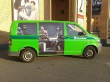 В Днепропетровске инкассаторские машины приобрели новый необычный дизайн. На боковой двери и окне изображены три вооруженных спецназовца и денежный кейс. В скором времени подобным дизайном обзаведутся все инкассаторские автомобили банка.