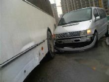 Mercedes получил незначительные повреждения: разбита фара, а также отвалился бампер. Микроавтобус в момент столкновения был застрахован.
