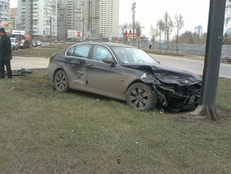 BMW на большой скорости двигался в сторону моста Патона. В этот момент с ул. А. Ахматовой «высунулся» Volkswagen Golf, и получил от баварца под бок. Но не просто получил, а сразу же отомстил за это, отшвырнув напавшего на зеленую полосу. Там BMW врезалась в рекламный щит, подкосив его силой своего удара. Отомстив, Volkswagen развернулся на 180 градусов.