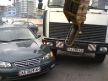 На Днепровской Набережной, на пересечение с ул. Серафимовича, Toyota Camry пострадала от автокрана, сообщает .
