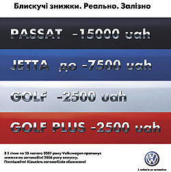 Популярный VW Jetta также стал ощутимо доступнее (скидка до 7500 грн.). А модели VW Golf и Golf Plus стали на 2500 грн. ближе для новых владельцев.