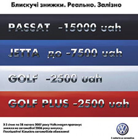 Скидки действуют по всей Украине в салонах официальных дилеров Volkswagen. Количество акционных машин ограничено.