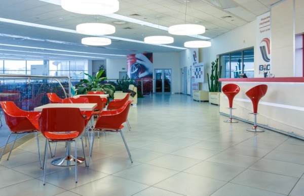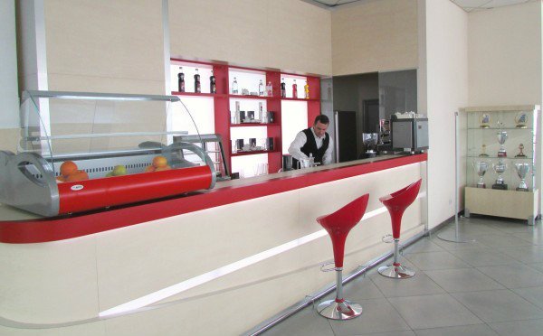 В кафе царит уютная неформальная атмосфера. Здесь можно с удовольствием скоротать время, ожидая сервисное обслуживание автомобиля, оформление документов и т.д. Вам будет предложен широкий ассортимент горячих и прохладительных напитков. Тут можно быстро перекусить аппетитными сэндвичами, воздушными булочками и круассанами. Интерьер кафе выполнен в современном стиле.
