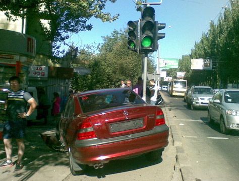В Киевском районе Донецка на пересечении улиц Артема и Батищева водитель автомобиля ВАЗ-21093, при смене сигналов светофора нарушил правила маневрирования и влетел в Opel.