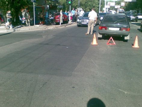 После сильного удара иномарку выбросило на тротуар, где она сбила четверых пешеходов. Все пострадавшие были доставлены машинами скорой помощи в ОТБ. У одного из них серьезная травма — перелом таза. У остальных повреждения полегче.
