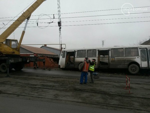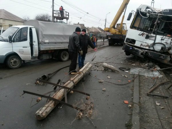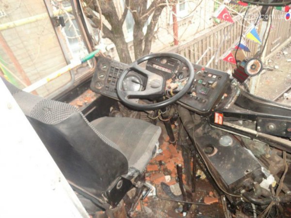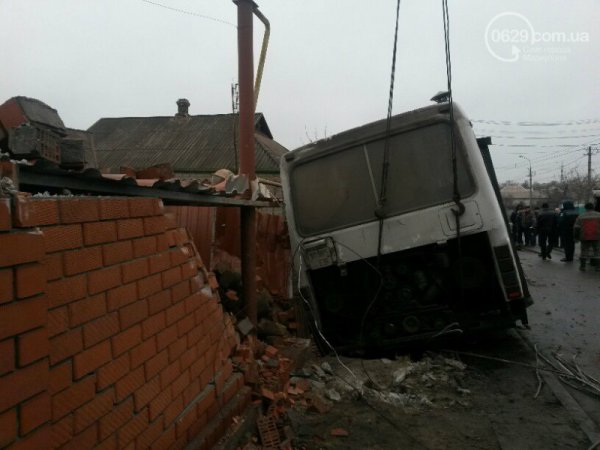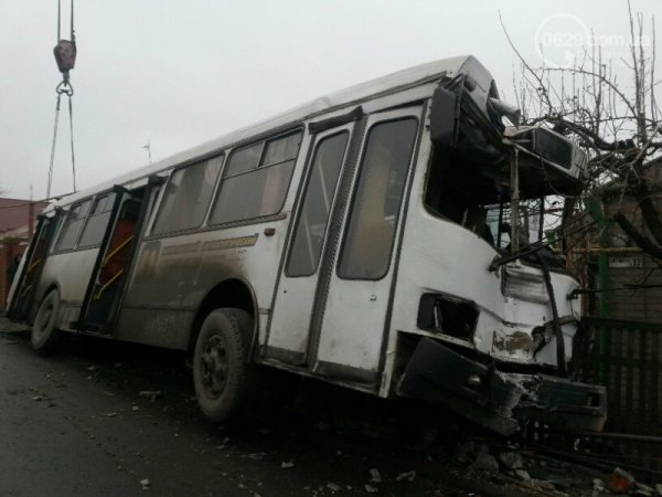 Сегодня 11 декабря в 5:30 утра на ул. 8 марта в пос. Мирный г. Мариуполь Донецкой области водитель автобуса не справился с управлением, выехал на встречную полосу, сбил столб электроопоры и въехал в забор, сообщает .