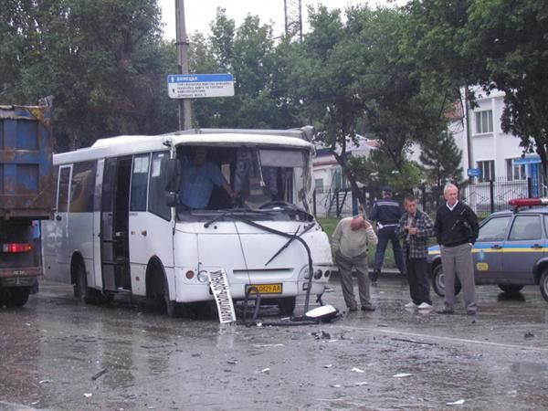 В Мариуполе на улице Тополиной у парка Петровского огромная фура врезалась в междугородний автобус, следующий из Мариуполя в Донецк. Грузовик поворачивал на зеленый сигнал светофора, когда его внезапно начало заносить на мокрой дороге. Вывести фуру из заноса водителю не удалось, поэтому автомобиль на большой скорости врезался в стоящий на перекрестке пассажирский автобус.
