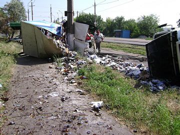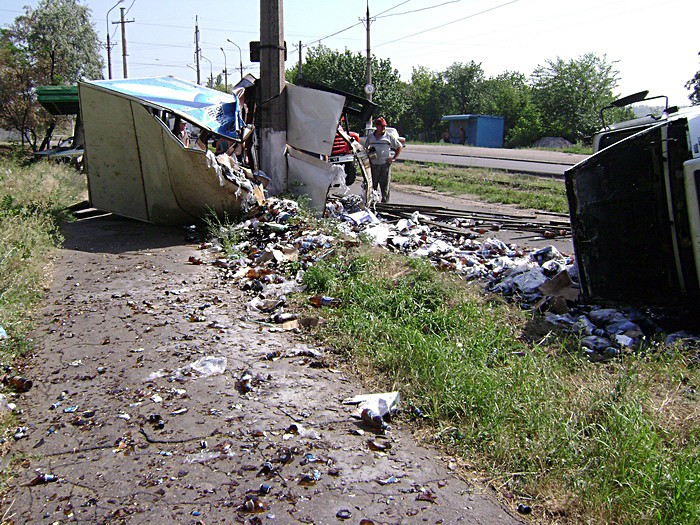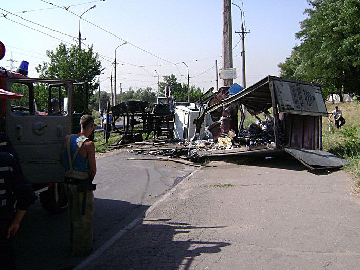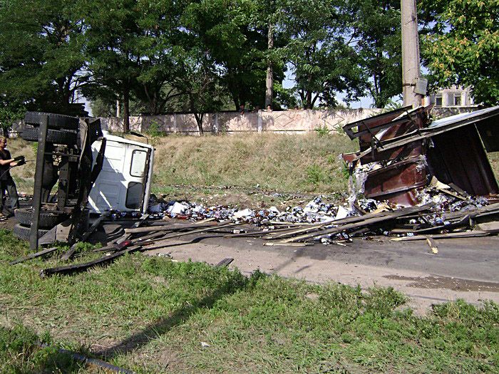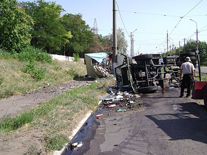 Авария произошла 28 июля, в 17:00, на ул. М.-Сибиряка в Мариуполе. Грузовой автомобиль двигался в направлении ул.8 Марта и совершил наезд на электроопору, сообщает .