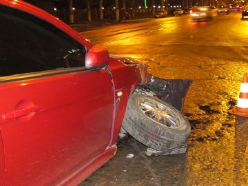 В результате аварии никто из водителей и пассажиров авто не пострадал. Отделался легкими царапинами и микроавтобус Ford Transit. А вот у автомобиля Mitsubishi Lancer Sportback буквально вырвало правое колесо.
