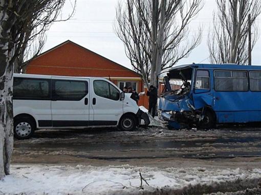 Микроавтобус двигался в сторону Мариуполя, и водитель, видимо, не справился с управлением, вылетел на встречную полосу и врезался в маршрутку, идущую во встречном напрвлении.