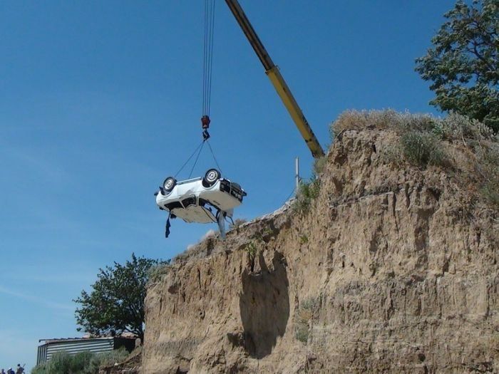 Почему машина обрушилась вниз, пока неизвестно: по предварительным данным она стояла метрах в десяти от края обрыва на тормозе, обрушения берега в тот момент не было.