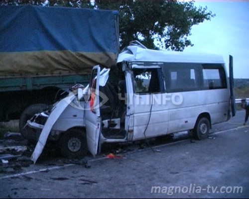Вследствие ДТП шестеро пассажиров автомобиля Mersedes погибли ,а водитель и еще двенадцать пассажиров получили телесные повреждения, с которыми были доставлены в больницу.
