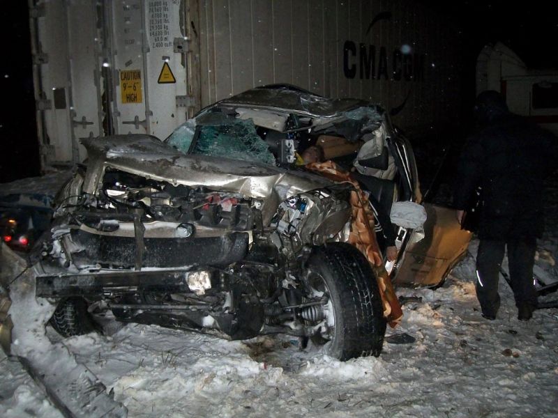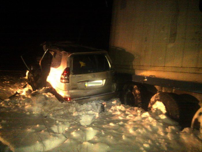 Удар был настолько сильным, что трое находившихся в легковом автомобиле Toyota Land Cruiser Prado людей погибли на месте аварии.
