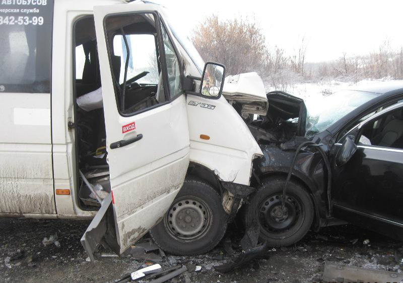 ДТП произошло 26 января, в 08:30, в Горняцком районе г. Макеевки. Водитель автомобиля Skoda Superb при выполнении обгона, выехал на полосу встречного движения, где совершил столкновение с автобусом Volkswagen LT35.