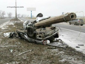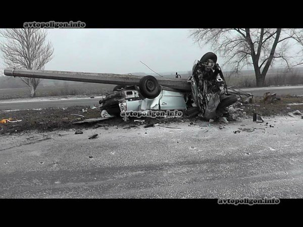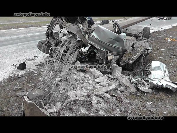 В результате наезда на препятствие Volkswagen Passat разорвало на две части - двигатель отлетел на несколько десятков метров.