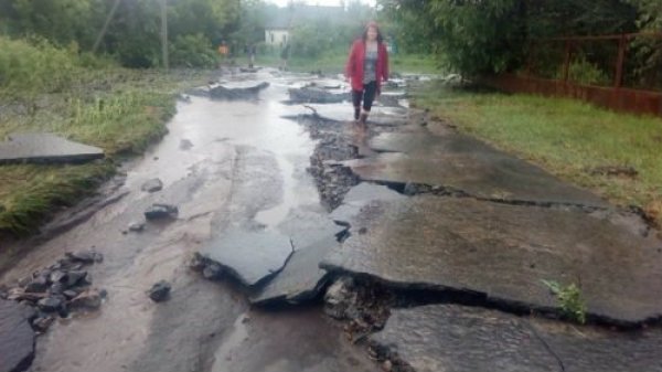 "Впервые в жизни столкнулся с таким аномальным явлением. Заехали в одно из сел на Тальнивщине - навестить родную бабушку. Дорога до самого дома лежала по асфальту, но после сильного двухчасового дождя, асфальта как и не было. Наступил апокалипсис: дороги нет, света нет, связи нет, телефоны разряжены, еще и суббота - выходной. Американское кино отдыхает", - комментирует в Facebook Владислав Москаленко.