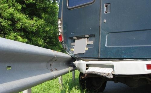 Удар был такой сильный, что микроавтобус развернуло на все 180 градусов и отбросило задней частью на дорожные ограждения.