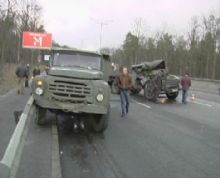 ДТП на Новогостомельском шоссе столкнулись два грузовика и легковой автомобиль.