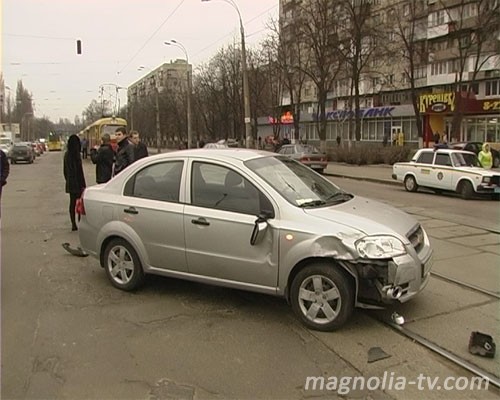 После столкновения Chevrolet вылетел на трамвайные пути и заблокировал движение. Никто не пострадал.