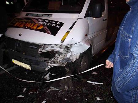 Вчера, в Днепропетровске маршрутный микроавтобус столкнулся с ''Таврией''.
