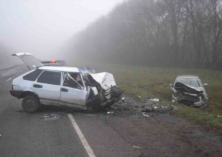 Вчера в 08:55 в Полтавской области на 289 км. автодороги ''Киев-Харьков'' водитель автомобиля Toyota Avensis, житель Донецкой области, 1964 г.р., двигаясь в направлении г. Киева, во время выполения обгона в условиях тумана выехал на полосу встречного движения, где столкнулся с автомобилем ВАЗ 2109, который двигался навстречу.